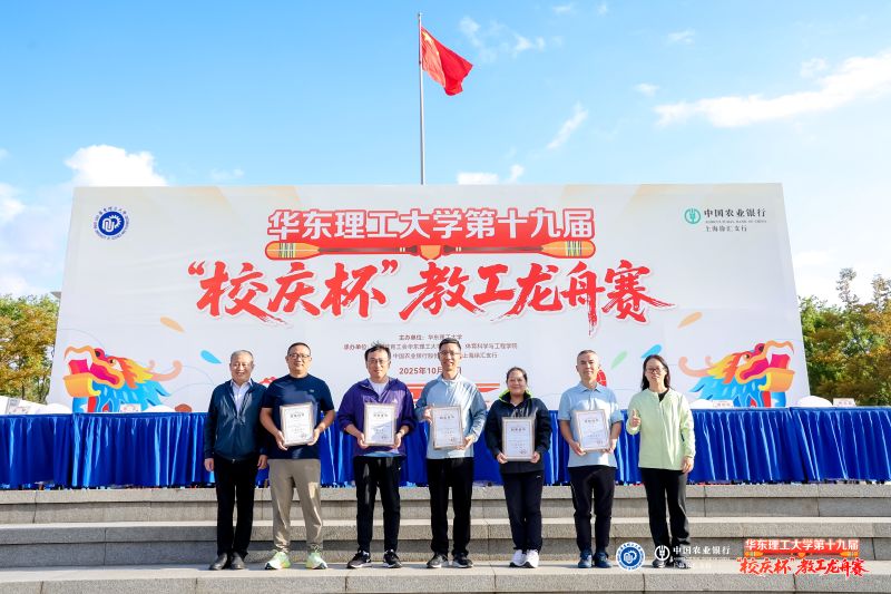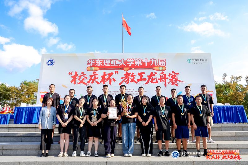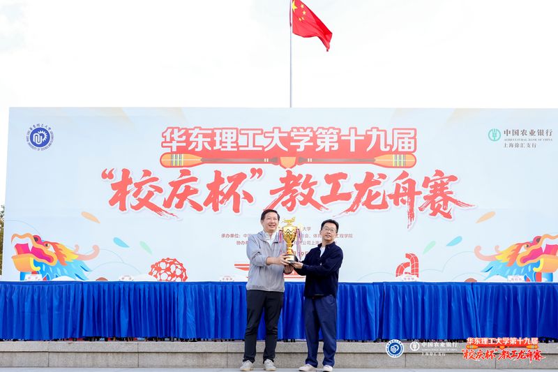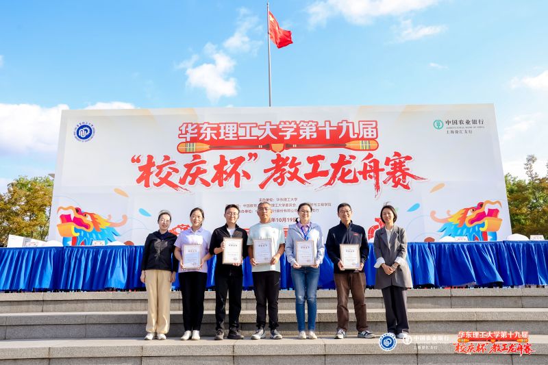 下午两点,伴随激昂的鼓点,比赛正式开始。龙舟似蛟龙出海、奋楫争先,水花飞溅,鼓声震天,观赛人群呐喊助威,现场气氛热烈非凡。经过多轮激烈角逐,后勤保障处、机关、化学与分子工程学院分获校内组冠亚季军;奉贤区总工会、华东理工大学附属闵行科技高级中学、华东理工大学附属中学分获特邀组冠亚季军。药学院、法学院、艺术设计与传媒学院、资源与环境工程学院、数学学院等5支校内代表队荣获“激流勇进奖”,中国农业银行股份有限公司上海徐汇支行获颁“特别贡献奖”。