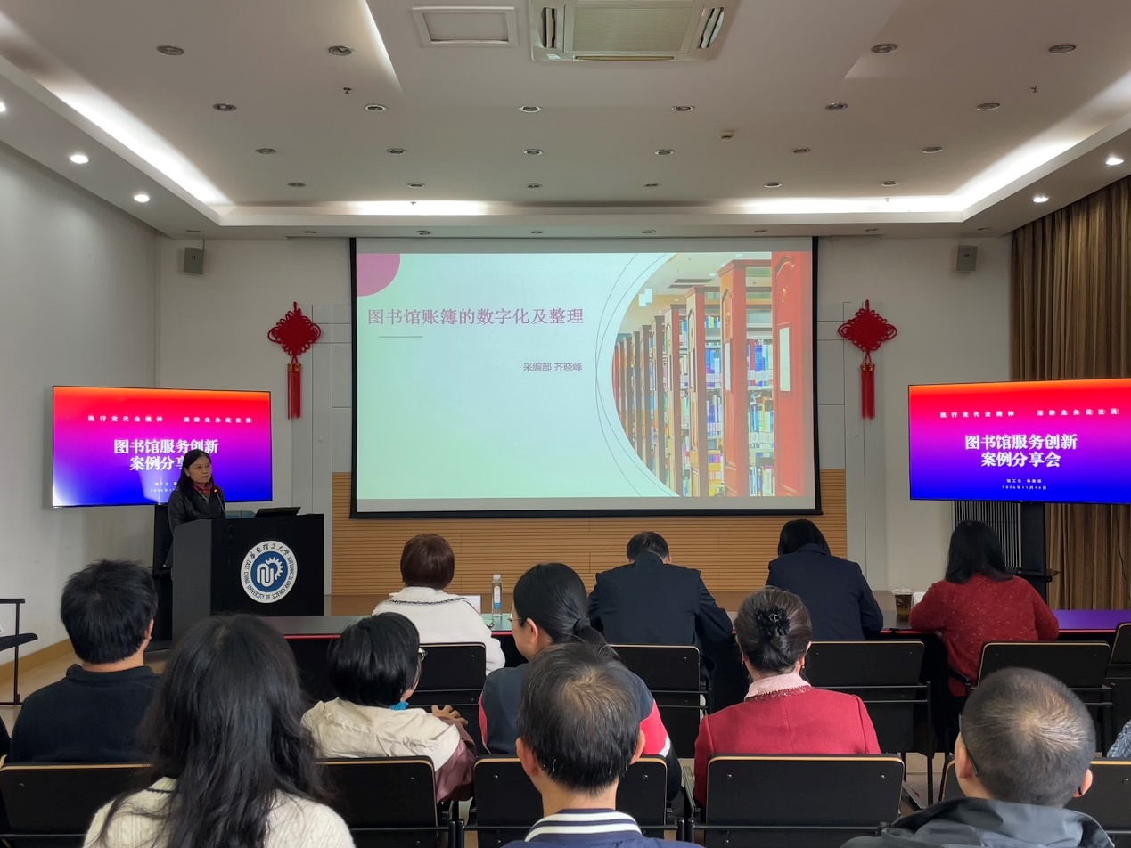 图书馆在深入贯彻学校第十二次党代会“四化”战略部署和 “两新两大” 战略布局上,通过专业馆员项目建设等形式,鼓励和支持馆员在业务创新中不断探索和实践。为激发馆员创新活力、促进服务经验交流,11月14日下午,图书馆工会与青教联联合举办服务创新案例分享会。图书馆党委书记朱广忠、副书记兼副馆长常亚青、副馆长李楠、段义严出席活动,全体馆员到场学习交流,工会主席周霜菊主持会议。