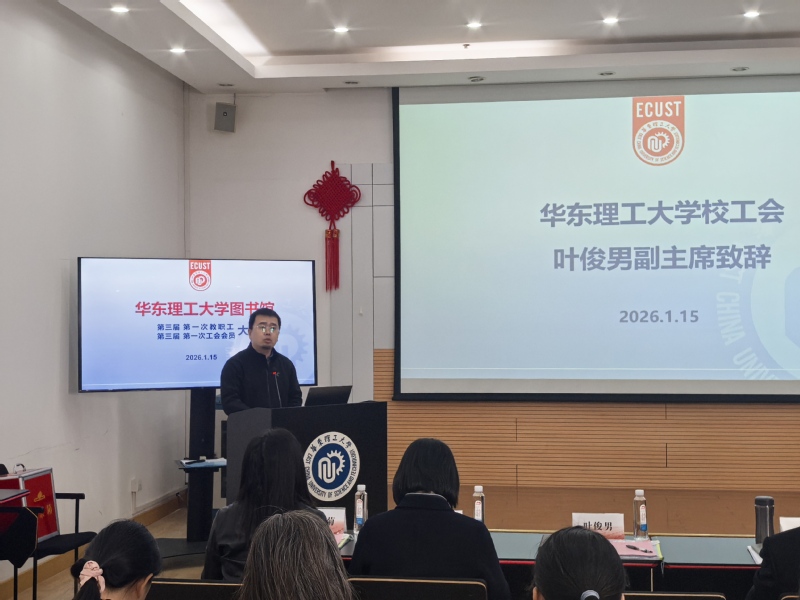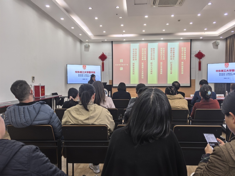 1月15日下午,图书馆第三届第一次教职工大会暨工会会员大会在徐汇校区图书馆201室召开。图书馆党政领导、全体教职工参会,校工会副主席叶俊男出席会议并致辞。