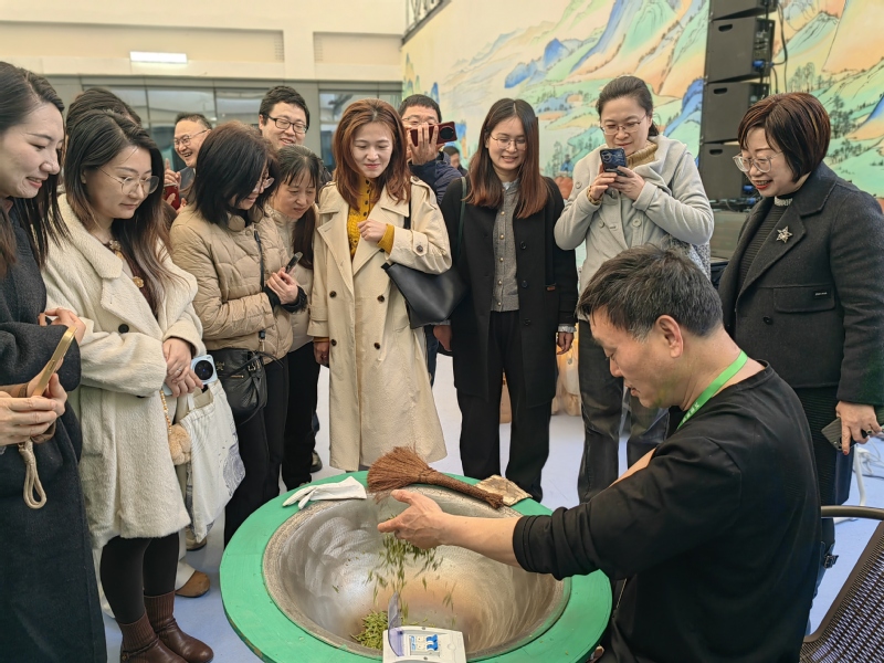 最后,大家在专业茶艺师的指导下深入了解龙井春茶的生长习性、采摘标准和传统制茶工艺,品味中国传统茶文化中所蕴涵的“和敬精乐”和“比睽节鼎”的人生哲学,互动中增强了沟通与交流。